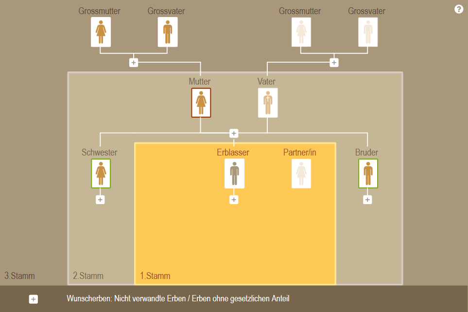 Hätte Walter eine andere Aufteilung gewünscht, so hätte er zu Lebzeiten mittels Testament seinen Willen festlegen können. Die Mutter und die Geschwister geniessen keinen Pflichtteilsschutz. Somit hätte er in Höhe der frei verfügbaren Quote von 50’000 (100%) Wunscherben einsetzen können.